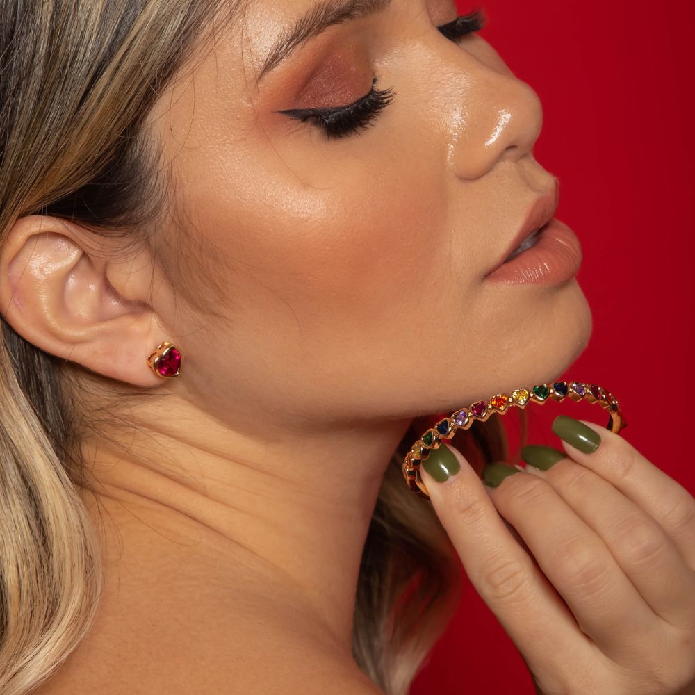 O Conjunto Corações Rainbow é a escolha ideal para quem ama acessórios românticos, femininos e cheios de personalidade. Formado por uma pulseira charmosa com corações cravejados em tons vibrantes e por brincos de coração que iluminam o rosto com um brilho elegante, esse conjunto combina suavidade com modernidade na medida certa.